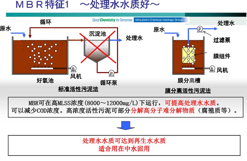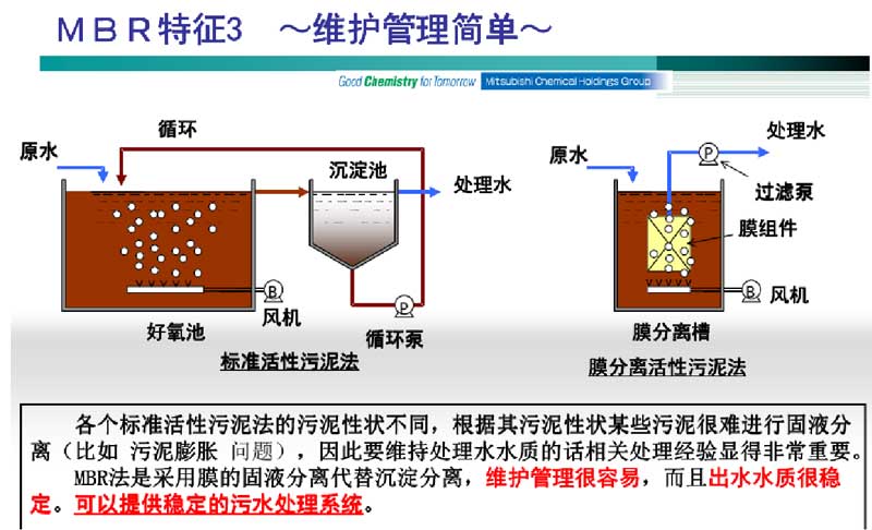 3、MBR膜工艺可以通过不断进行泥水分离增加膜池污泥浓度并完成活性污泥更新迭代后回流,起到平衡生化系统可持续性生产的作用,而且可以大幅减少剩余污泥的排出。